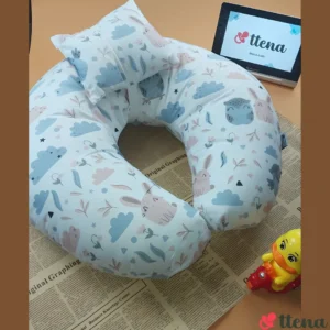 تأتي المخدة مع مسند لرأس الطفل مما يساعد على الحفاظ على رأس الطفل في وضعية مريحة وصحيحة خلال الرضاعة. هذا التصميم المدروس يضمن توزيع الوزن بشكل متساوٍ، مما يقلل من إجهاد الأم ويوفر دعمًا إضافيًا للطفل.