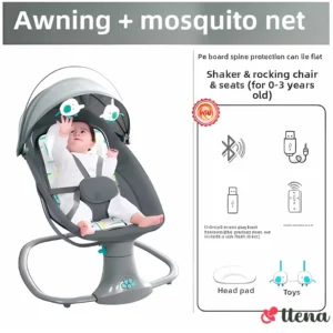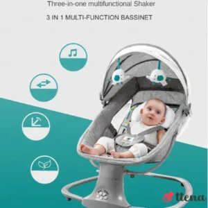 - سرير وكـرسي هزاز متعدد الوظائف: يمكن استخدامه ككرسي استرخاء، سرير للنوم، أو ككرسي هزاز كهربائي يساعد على تهدئة الطفل.