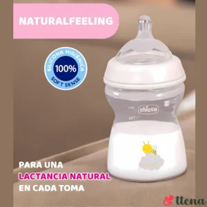 ببرونة شيكو Natural Feeding 250 مل مصممة لمحاكاة الرضاعة الطبيعية بفضل حلمة انسيابية تحاكي ثدي الأم، مع نظام متطور لتقليل الغازات والمغص لدى الأطفال.