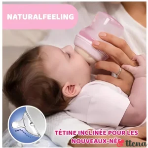ببرونة شيكو Natural Feeding 150 مل مصممة لمحاكاة الرضاعة الطبيعية بحلمة سيليكون طرية وانسيابية، مع صمام مضاد للمغص لتقليل الغازات وضمان راحة الطفل.