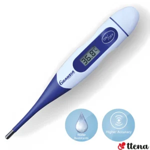 ترمومتر Granzia الرقمي هو الاختيار الأمثل لكل أم تبحث عن دقة وأمان لقياس حرارة طفلها. يتميز بطرف مرن ومقاوم للماء ليوفر تجربة قياس سهلة وسريعة بدون قلق.